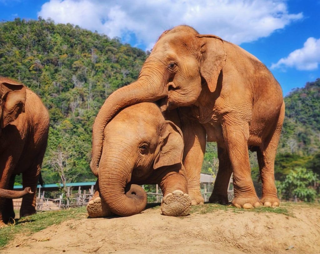 Die meisten Elefanten haben durch den Menschen körperliche und/oder seelische Verletzungen erlitten und wurden deshalb hierhergebracht – viele von ihnen während der Corona-Zeit. In freier Wildbahn könnten sie nicht mehr überleben, da ihnen in den meisten Fällen schwere Verletzungen zugefügt wurden. Eine junge Elefantin ist ebenfalls hier: Ihr wurde bereits im Kindesalter von ihrer Mutter auf ein Bein getreten, das dabei schwer verletzt wurde.